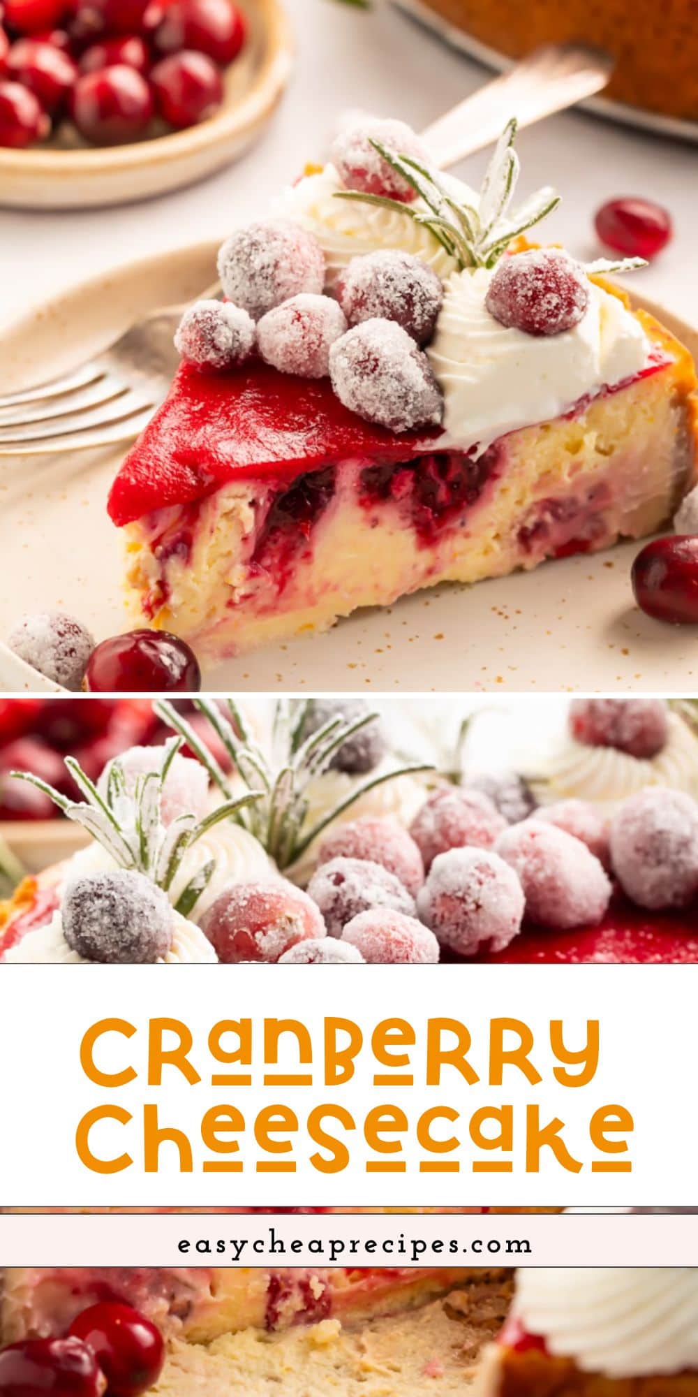 This creamy, tangy and delicious Cranberry Cheesecake is the perfect fruity dessert for your Thanksgiving table! It may look like there are a lot of steps, but with a graham cracker crust, classically creamy middle, cranberry swirl and a vibrant cranberry glaze you won’t believe how easy it is to bake this cheesecake ahead for up to 12 guests!