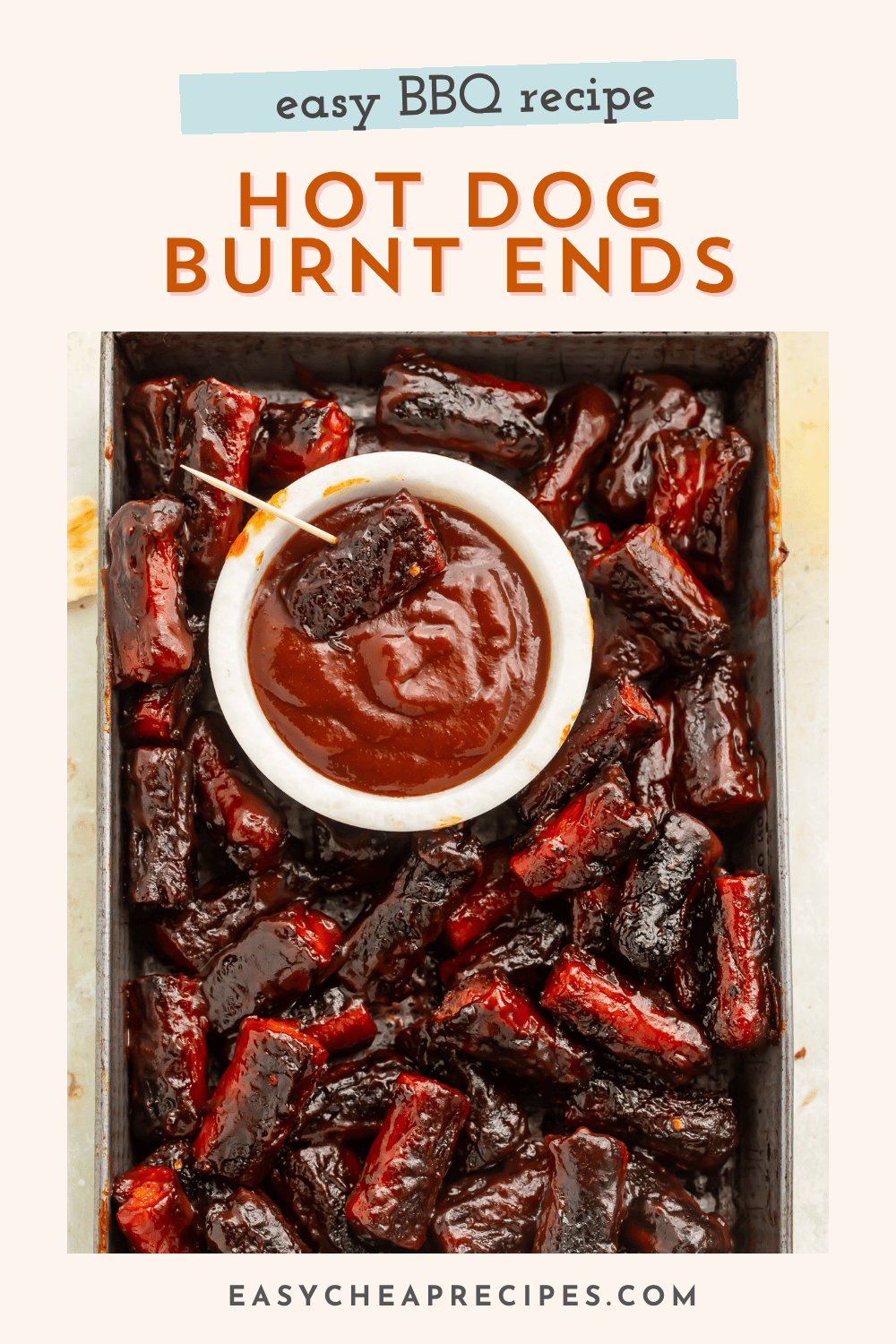 These super-easy Hot Dog Burnt Ends are the perfect game day appetizer. Enjoy all the signature sweet, sticky, smoky flavors of burnt ends in an affordable way without needing to fire up the smoker!