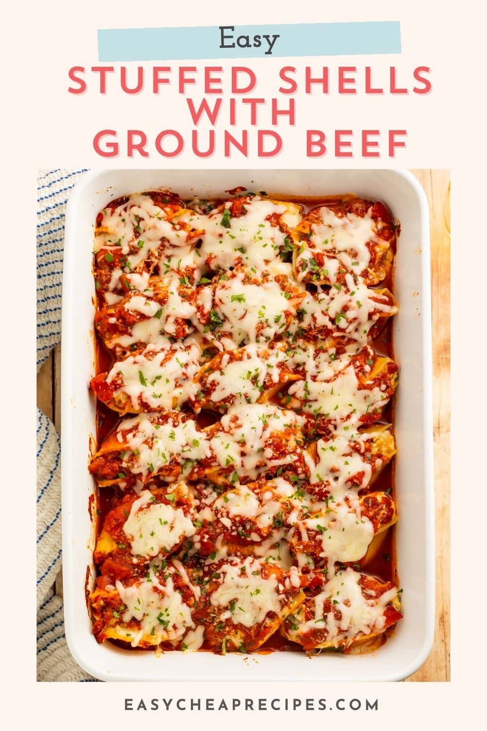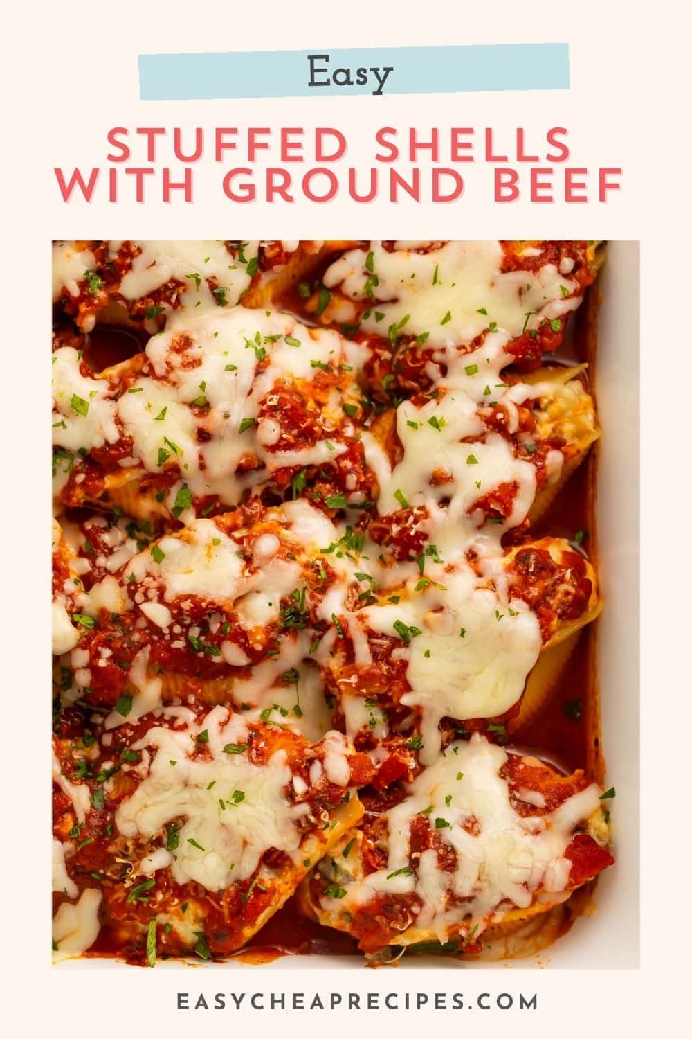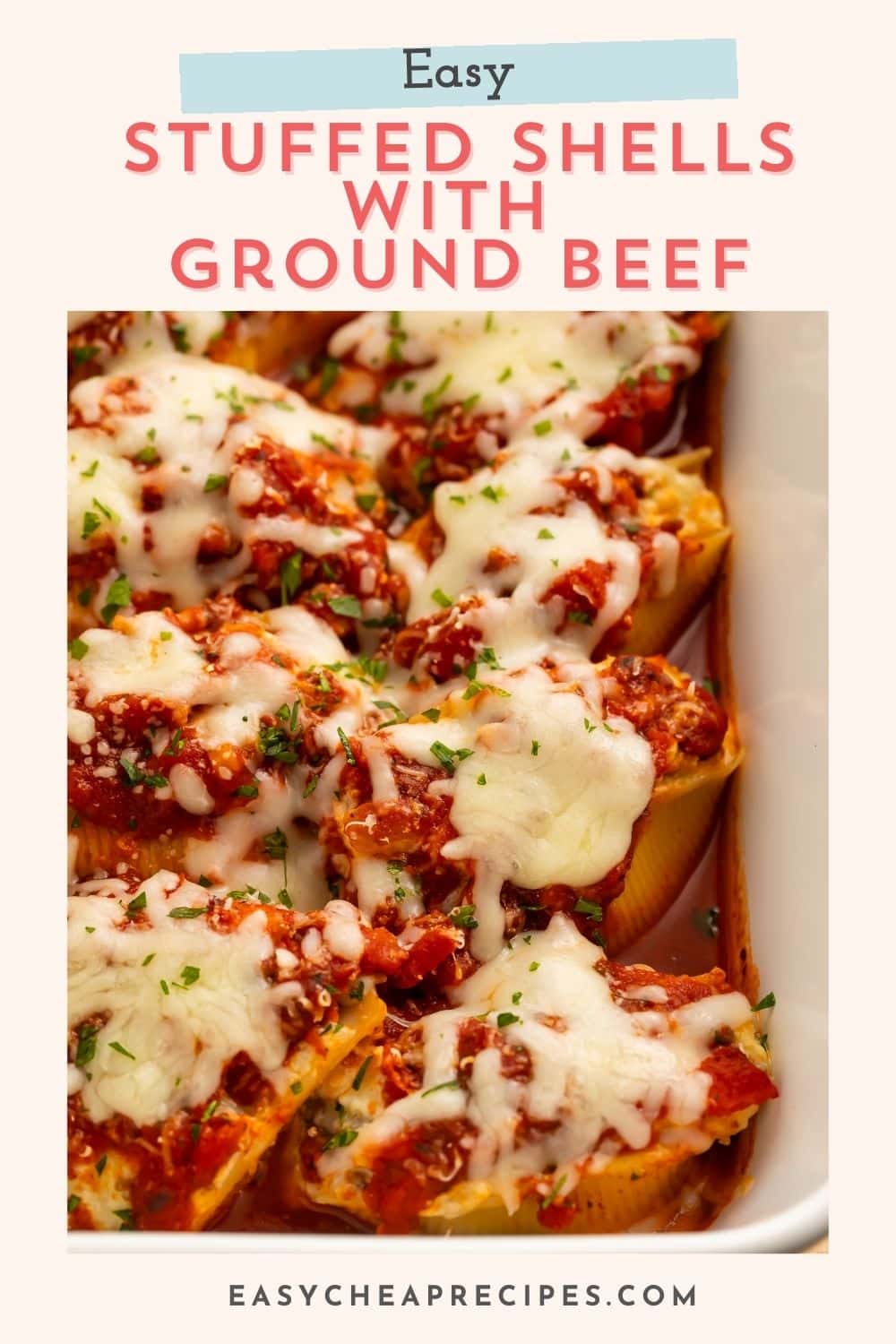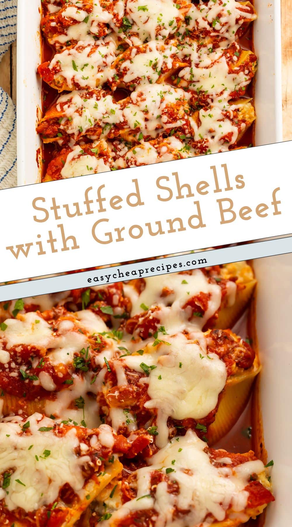 - It could not be easier to get these stuffed shells with ground beef on the table for dinner tonight. You can get started with the filling while the shells cook and cool enough to handle, and we’ve used your favorite brand of spaghetti sauce to ease up the pressure of making one yourself!